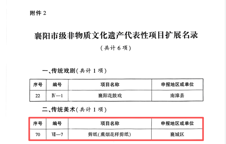 熏烟花样剪纸是以南北技艺融合为特色的传统美术项目,其源于山西,成于襄阳古城。该剪纸以家传花样实物传承,熏烟翻样、点染剪纸是核心技艺,有特色口诀。它丰富了襄阳剪纸内涵,是南北文化交融体现,具历史研究与地域文化价值。目前张玉勤为主要传承者,成立工作室等开展活动。后续计划整理保护作品与口诀,成立展示及研究中心,创新花样,举办活动,扩大传承传播。