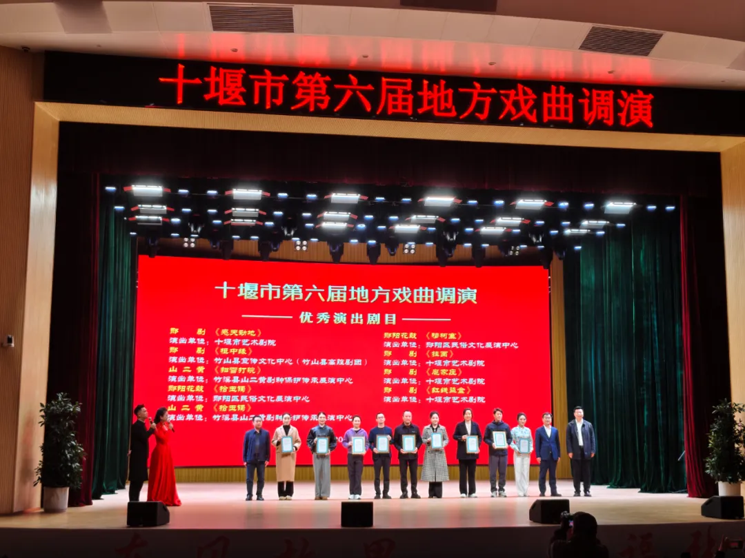 在闭幕式上还举行了优秀剧目授牌仪式,郧剧《沧浪歌》、《清风宴》、《纸上的星火》荣获优秀原创剧目,山二黄《拾玉镯》等9部剧目荣获优秀演出剧目,十堰市艺术剧院等8家单位荣获优秀组织单位,张湾区文化和旅游局等3家单位荣获特殊贡献单位。