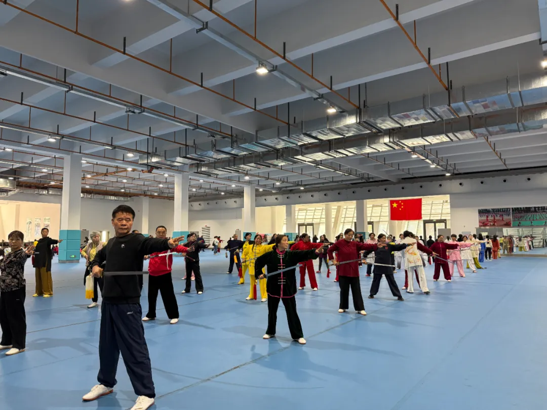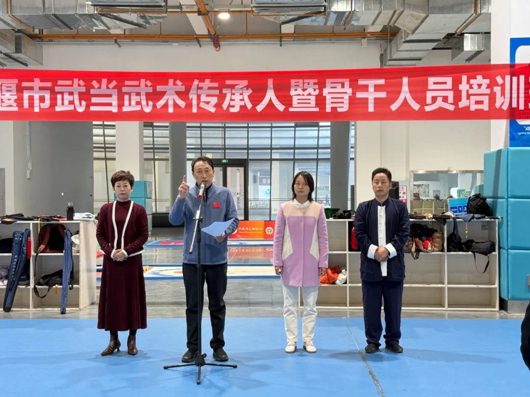 11月13日上午,由十堰市文化和旅游局主办,十堰市群众艺术馆(艺术研究院)、十堰市体育中心承办的2025年十堰市武当武术传承人暨骨干人员培训班开班仪式在奥体中心青少年馆举行。全市近200名武当武术爱好者将在三天时间里系统学习武当太极拳、武当纯阳剑。