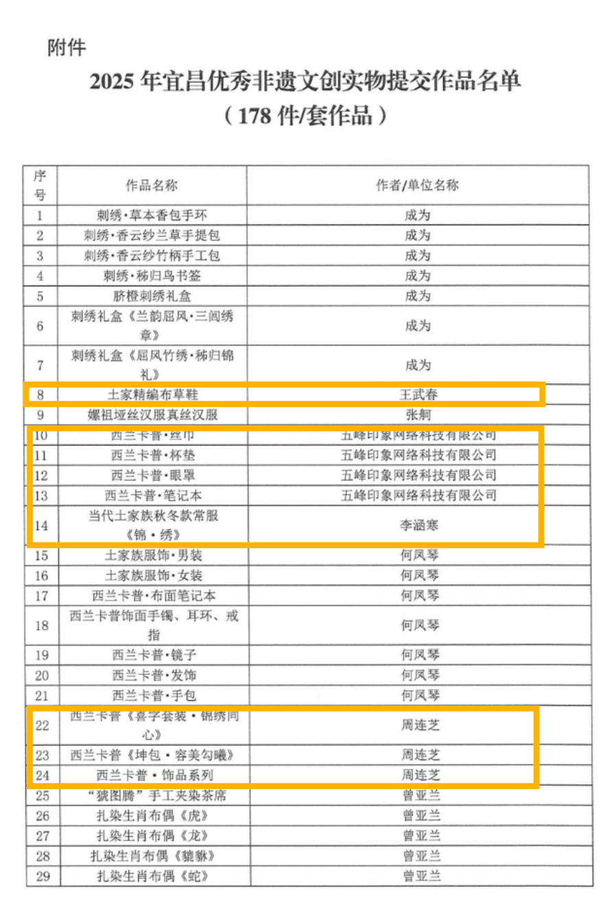 近日,“2025年宜昌优秀非遗文创作品展”在宜昌市群众艺术馆与公众见面。我馆精选报送的27件非遗文创作品已全部亮相,涵盖土家精编布草鞋、西兰卡普、土家族常服、五峰特色酥点、白溢寨酒、土家柴火起酥饼、五峰精细竹编技艺、精细木器八大类别,集中呈现了五峰非遗的匠心传承与创新活力。