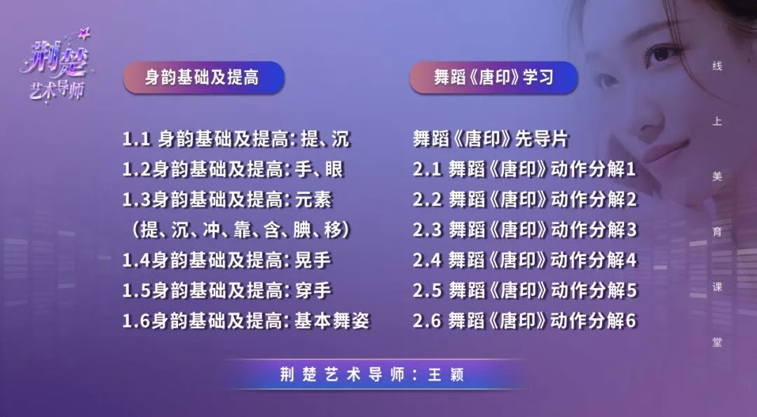 更有舞蹈《唐印》的完整学习,通过动作分解与连贯演绎,让你亲身感受汉唐舞姿的雍容大气,实现从身韵入门到经典剧目演绎的完整进阶,在一招一式中领略中国古典舞的独特魅力。