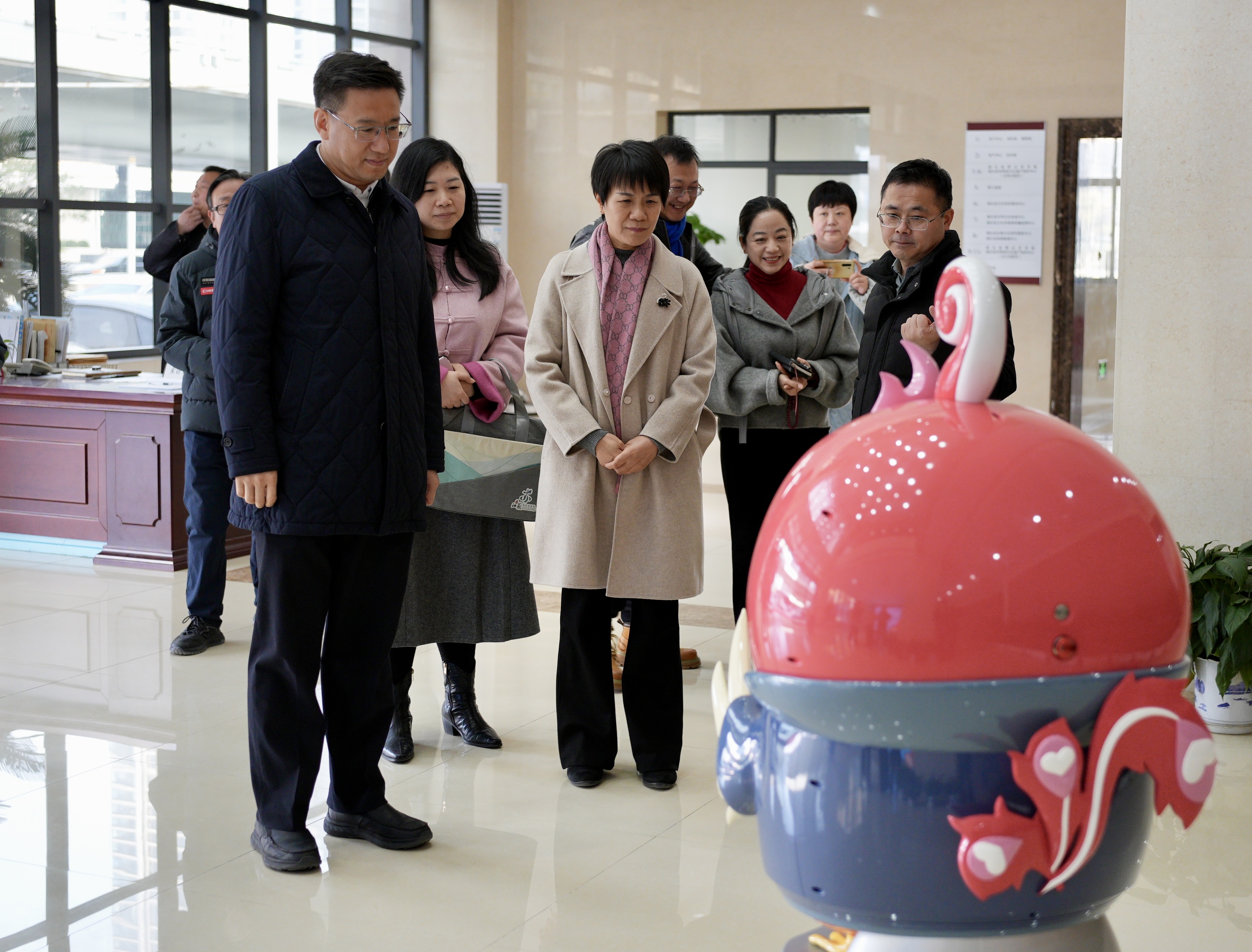 在单位新址一楼大厅,克克首先参观了省群艺馆IP形象“凤小艺”AI馆员,了解楼内相关厅直单位整体布局,随后到11楼省群艺馆办公区察看职工办公环境。在3楼、4楼省群艺馆业务功能区,克克边看边听取了省群艺馆“一馆两址”整体规划汇报,了解场馆新址的业务功能区布局规划,并调研察看了省群艺馆文旅宣传品设计开发情况。