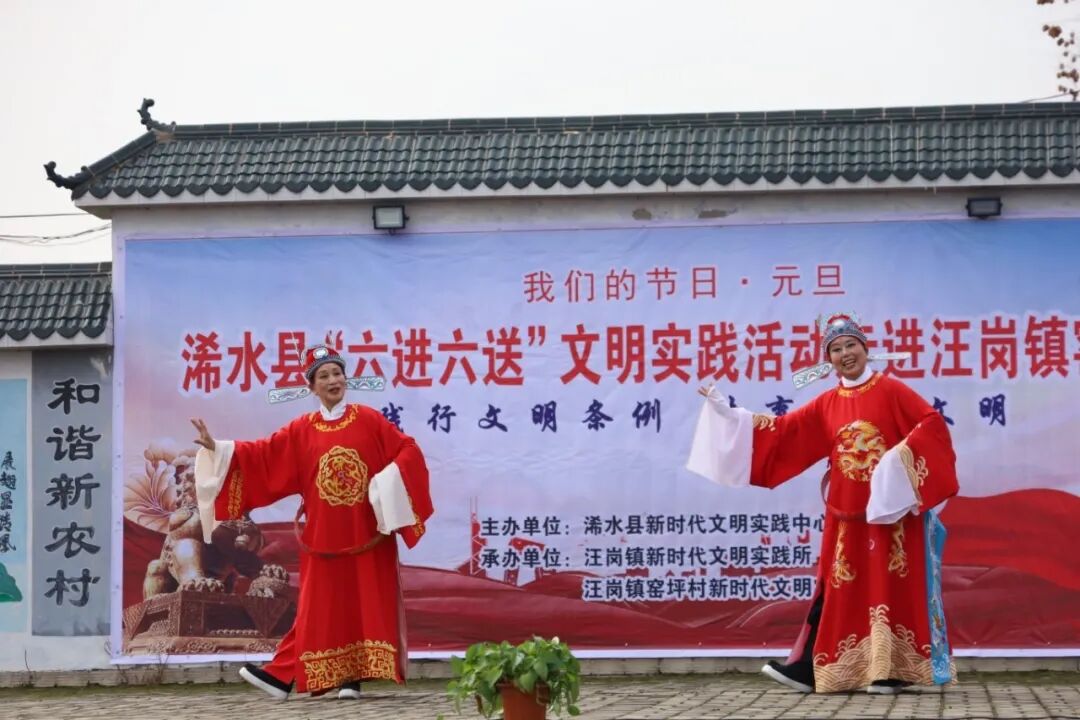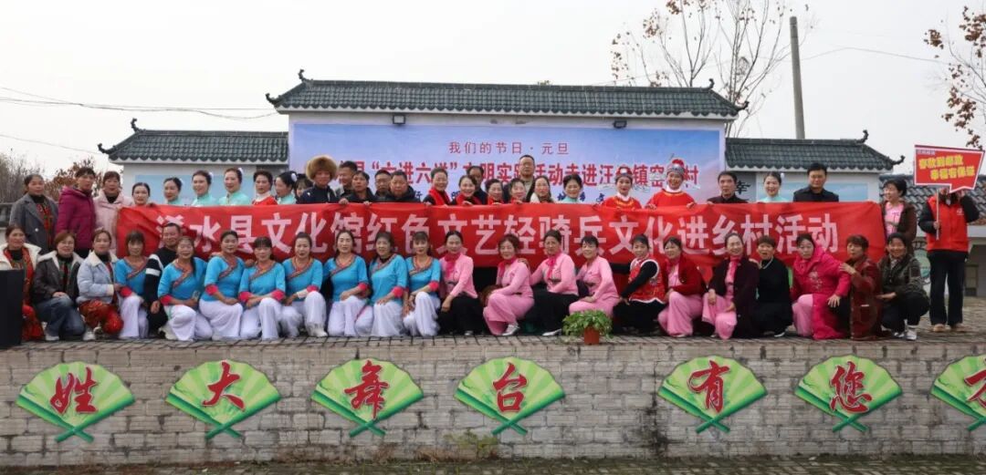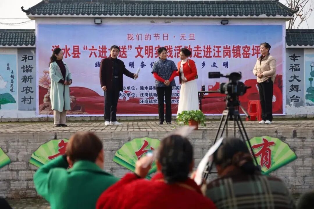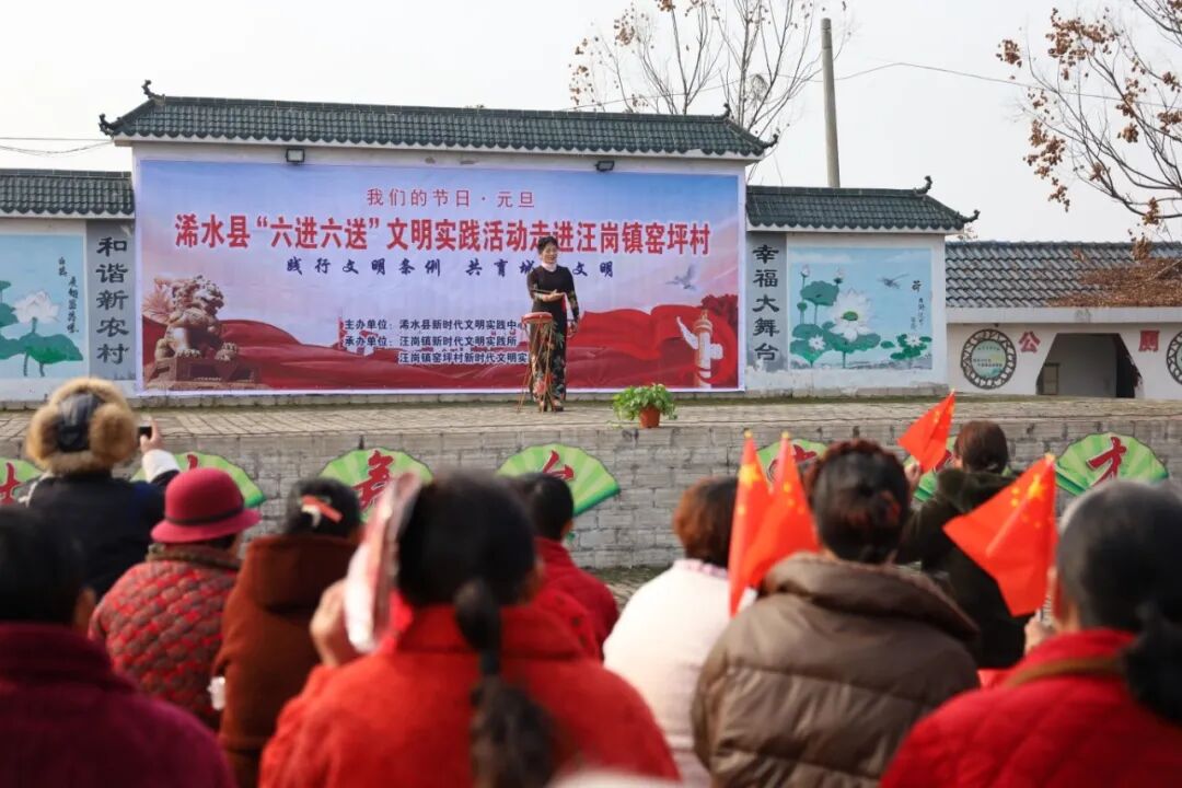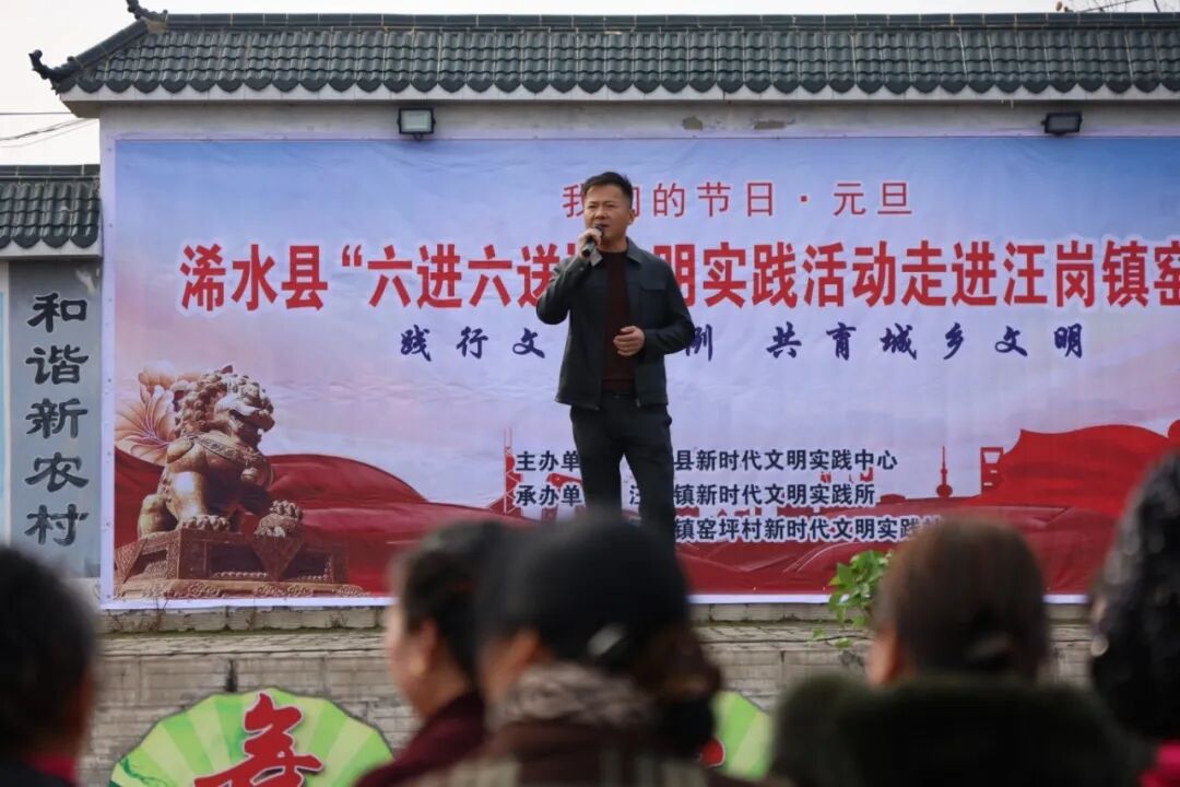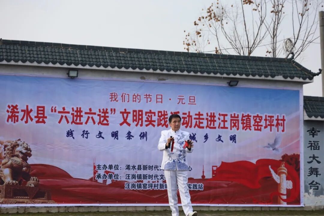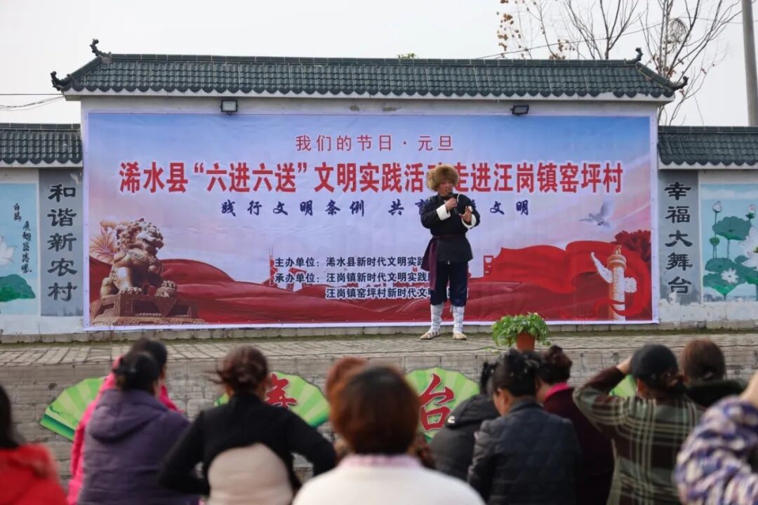 为喜迎元旦佳节,丰富群众精神文化生活,2025年12月30日上午,浠水县文化馆带领红色文艺轻骑兵小分队走进了汪岗镇窑坪村,与汪岗镇新时代文明实践所、司法所、卫生院一起,开展了一场“六进六送”文明实践活动,把节日欢乐、便民服务 “打包” 送到村民家门口。