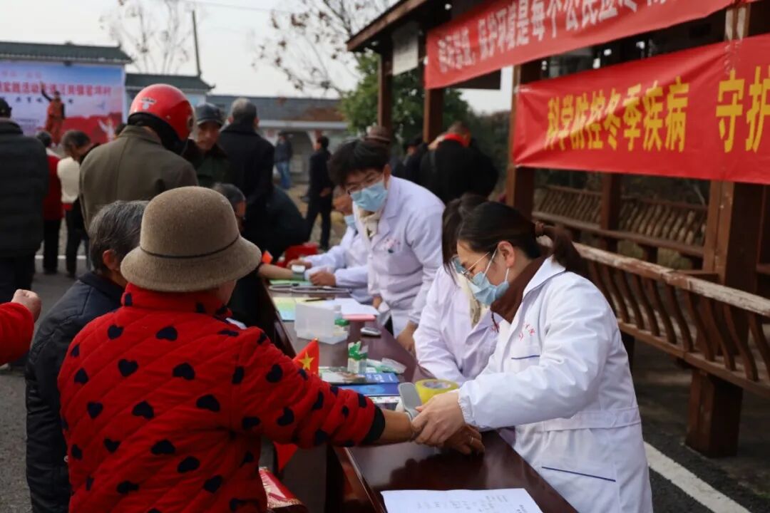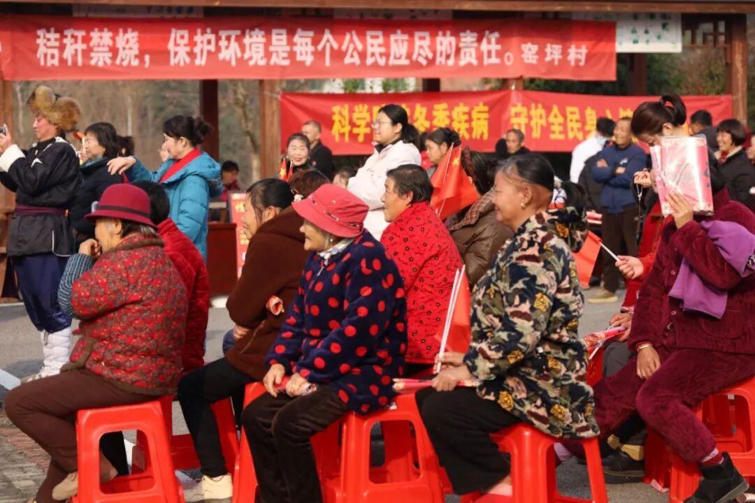 舞台旁的便民服务区同样热闹:乡镇卫生院医护人员忙着给村民免费量血压、测心率,司法所工作人员拿着宣传册,讲解文明条例、普及法律知识,村民们笑着说:“看了戏、听了歌,连身体情况都摸清了,这活动太实在!”