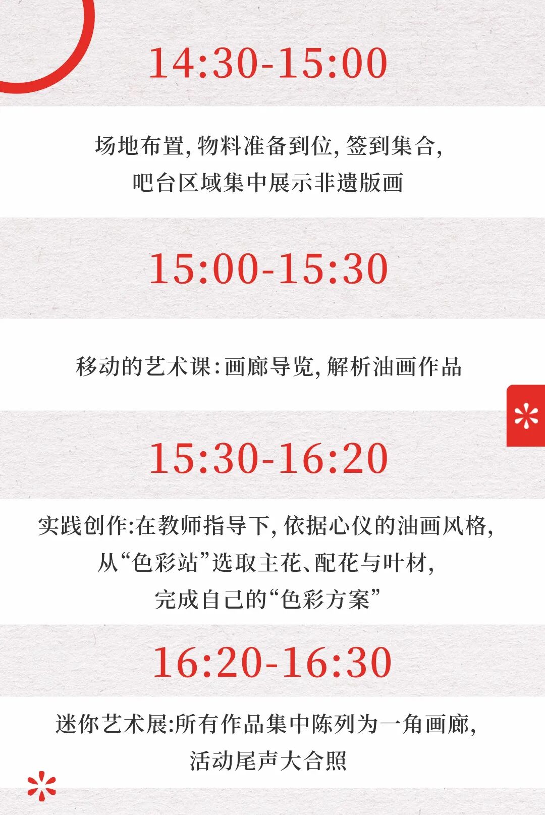 每个人都可以成为自己生活的艺术家,大学教师亲授,将油画经典与当代生活美学、手作实践相结合,在商场里开辟一处“心灵绿洲”,以沉浸式艺术创作开启一场情感表达与自我对话的艺术之旅。