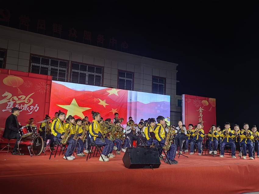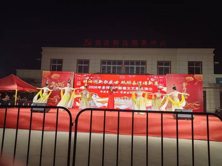 1月14日晚,天门市多祥镇绿林口村文化广场上人头攒动,热闹非凡,以“辞旧迎新歌盛世,砥砺奋进谱新篇”为主题的2026年多祥镇迎新春文艺惠民演出活动在这里举行。