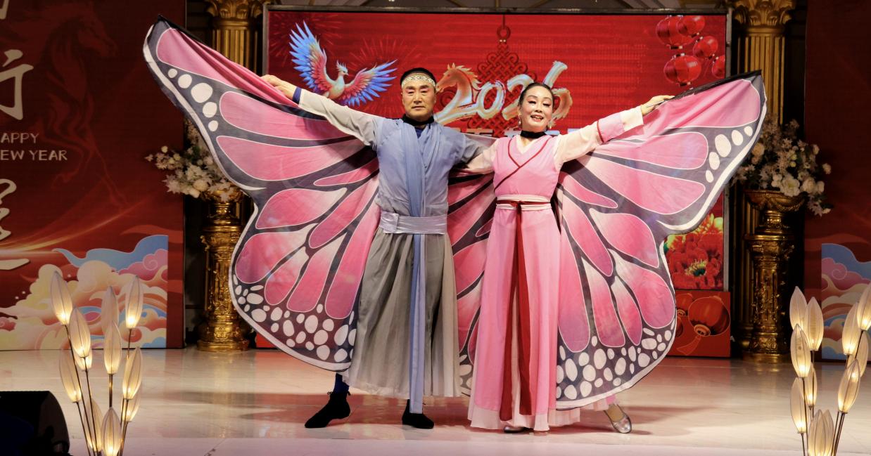 双人舞《梁祝》由王燕、梅志勇表演,再现经典爱情传说,诠释对爱情的坚定信念与执着追求。