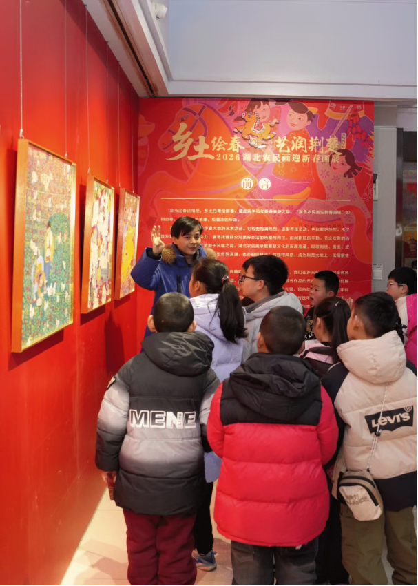从解读农民画中的文化密码,到亲手创作年味作品,本次活动不仅为社区青少年带来一堂生动鲜活的文化体验课,更是省群艺馆与涂家岭社区深化共建共治共享的生动实践。通过精准对接社区群众在“寒假+春节”期间的文化需求,发挥专业资源优势,在美术展厅中搭建文化课堂,让青少年在沉浸式体验中品味荆楚文化、感受农民画之美,成为中华优秀传统文化的见证者、实践者与传承者。