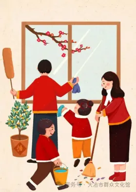 辞旧迎新:“尘”与“陈”谐音,扫尘意味着扫去一年的晦气,迎接新年新气象