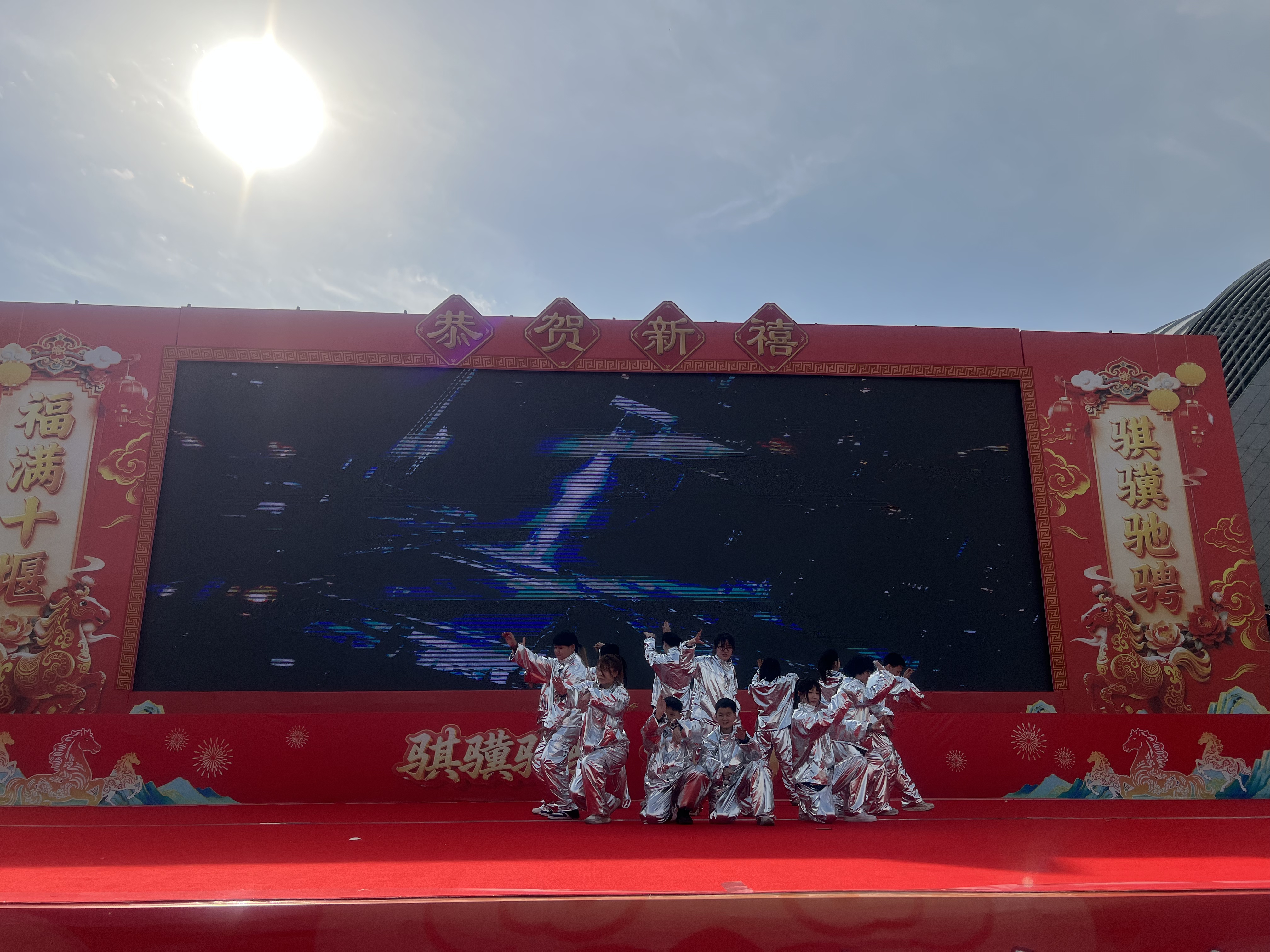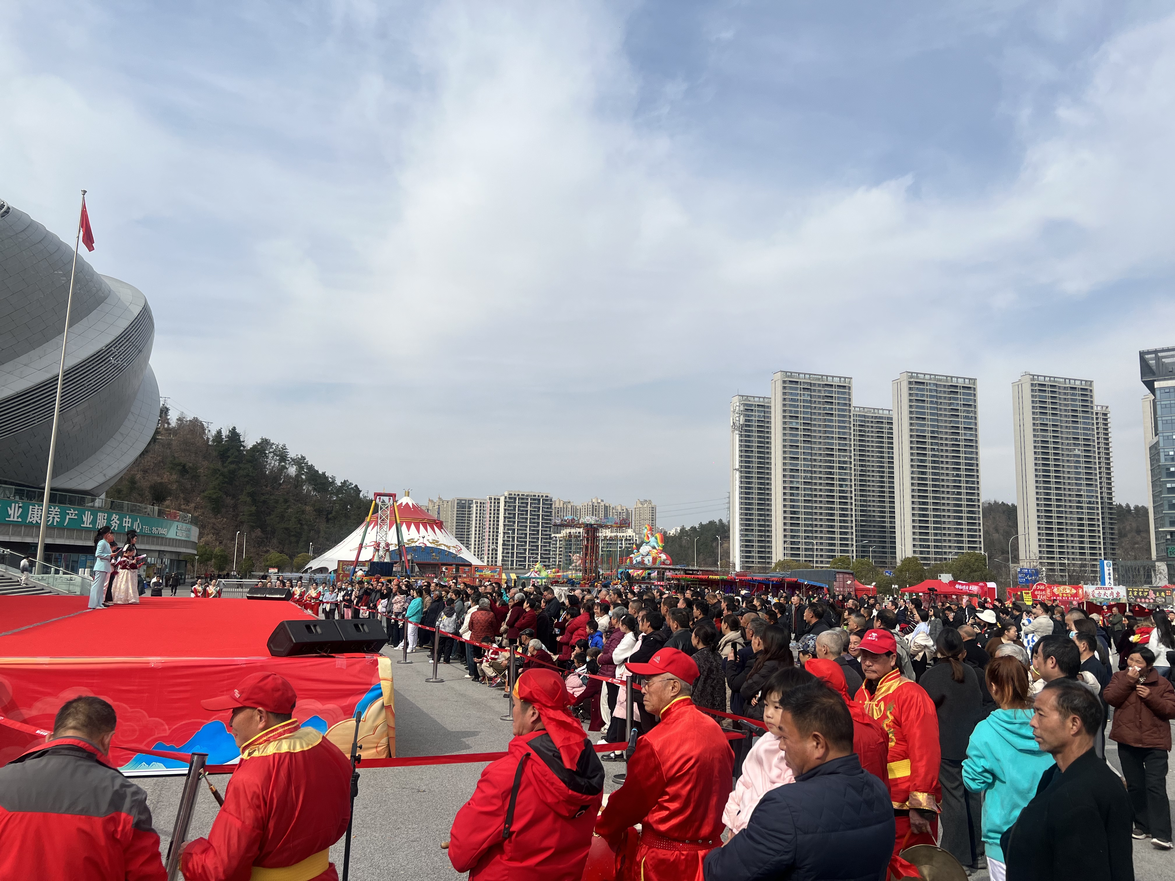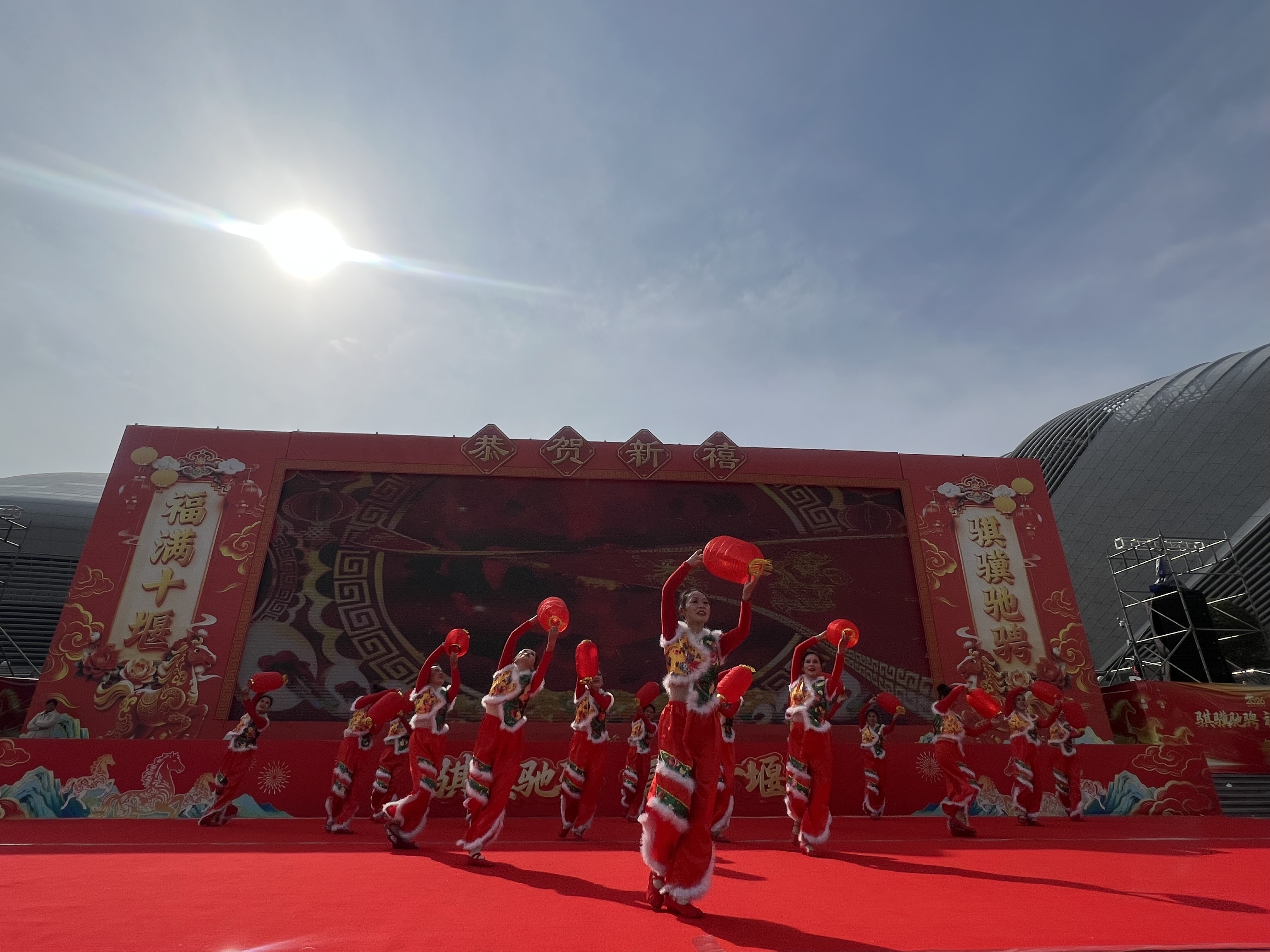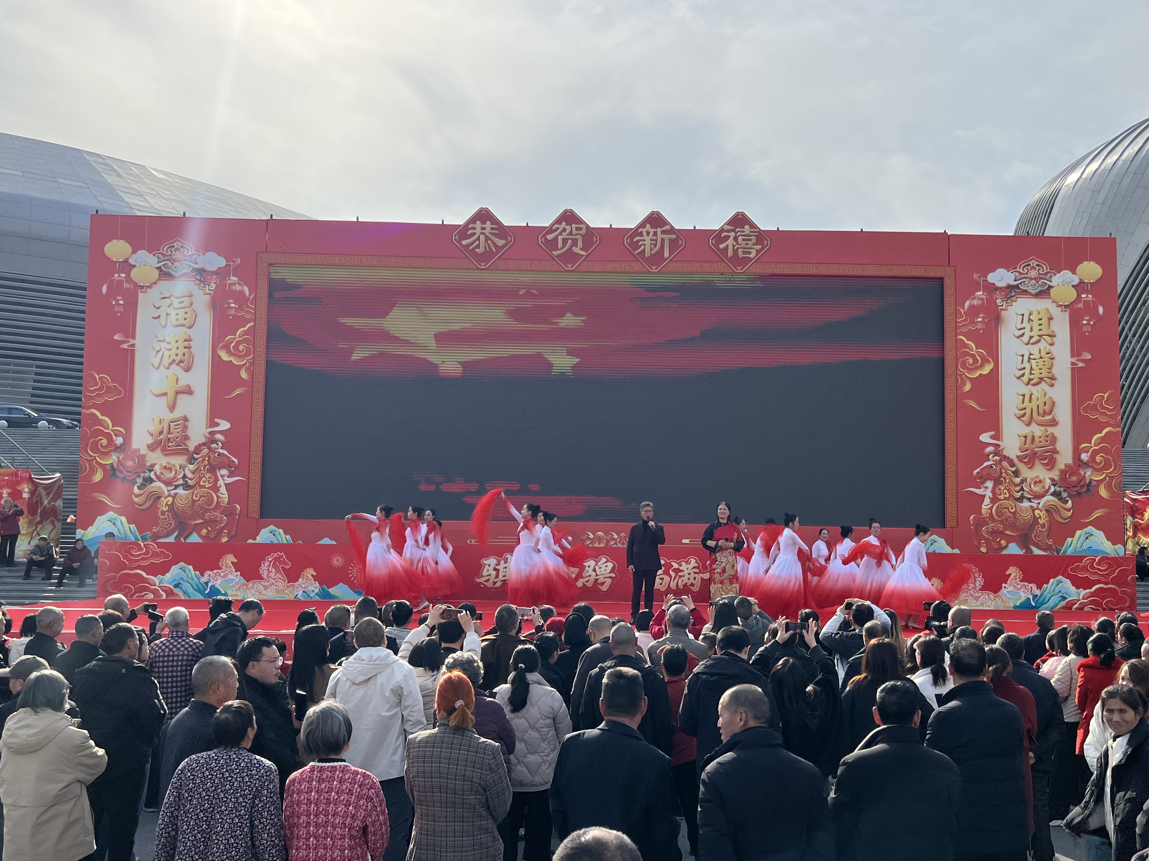 骐骥驰骋迎新岁,福满十堰贺新春。为深入学习贯彻党的二十届四中全会精神,传承弘扬中华优秀传统文化,聚力服务支点建设,积极营造喜庆祥和的春节文化氛围,2月18日(大年初二)下午,由中共十堰市委宣传部、十堰市文化和旅游局主办,十堰市群众艺术馆(艺术研究院)、十堰市艺术剧院、十堰市体育中心、十堰市美术馆等单位承办的2026“知音湖北·欢喜过大年”十堰市“欢欢喜喜过大年”系列文化惠民演出大年初二专场活动在十堰市奥体中心东广场持续上演。