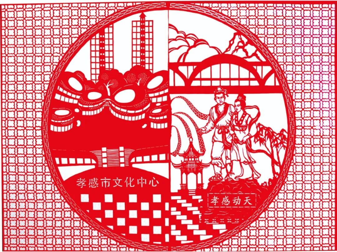 孝感雕花剪纸历经民间艺人的不断创新,其反映的内容越来越丰富,涵盖民间风情、现实生活、吉祥祈福、婚庆祝寿等诸多方面,艺术风格融合了我国北方剪纸的“粗犷古朴、浑厚纯真”和南方剪纸的“隽美秀丽、玲珑剔透”,形成了独特风韵,作品线面相间,虚实参差,给人以质朴纯真的美感,更成为“孝文化”的重要载体。