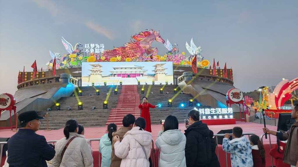 2月14日晚,荆街“策马三国·荆州秀”新春三国彩灯嘉年华活动璀璨启幕,主题花灯将园区装点得如梦似幻。在这场视觉盛宴中,由我馆主办的非遗进景区——马山民歌专场演出也精彩亮相灯展现场,国家级、省级、市级非遗传承人以灯海为背景,倾情演唱《水里照的都是栽秧人》《马山,我亲爱的家乡》《翻一个荷花对牡丹》《民歌小调联唱》等经典曲目。原汁原味的乡音穿透夜空,为绚烂灯海注入深厚的文化灵魂,让市民游客在赏灯游园间,沉浸式感受来自江汉平原的乡音古韵。