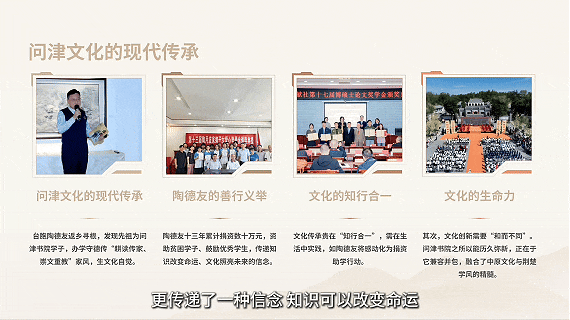 随后,课程将聚焦“传德报恩”的文化自觉,讲述清代状元刘子壮“满汉一体”的殿试策论,以及当代台胞陶德友先生受族谱感召、持续十三年捐资助学的动人故事,揭示文化认同如何跨越海峡,形成善的循环。并了解问津文化在数字化、课程化、产业化方面的前沿实践,窥见传统文化当代转化的具体路径。