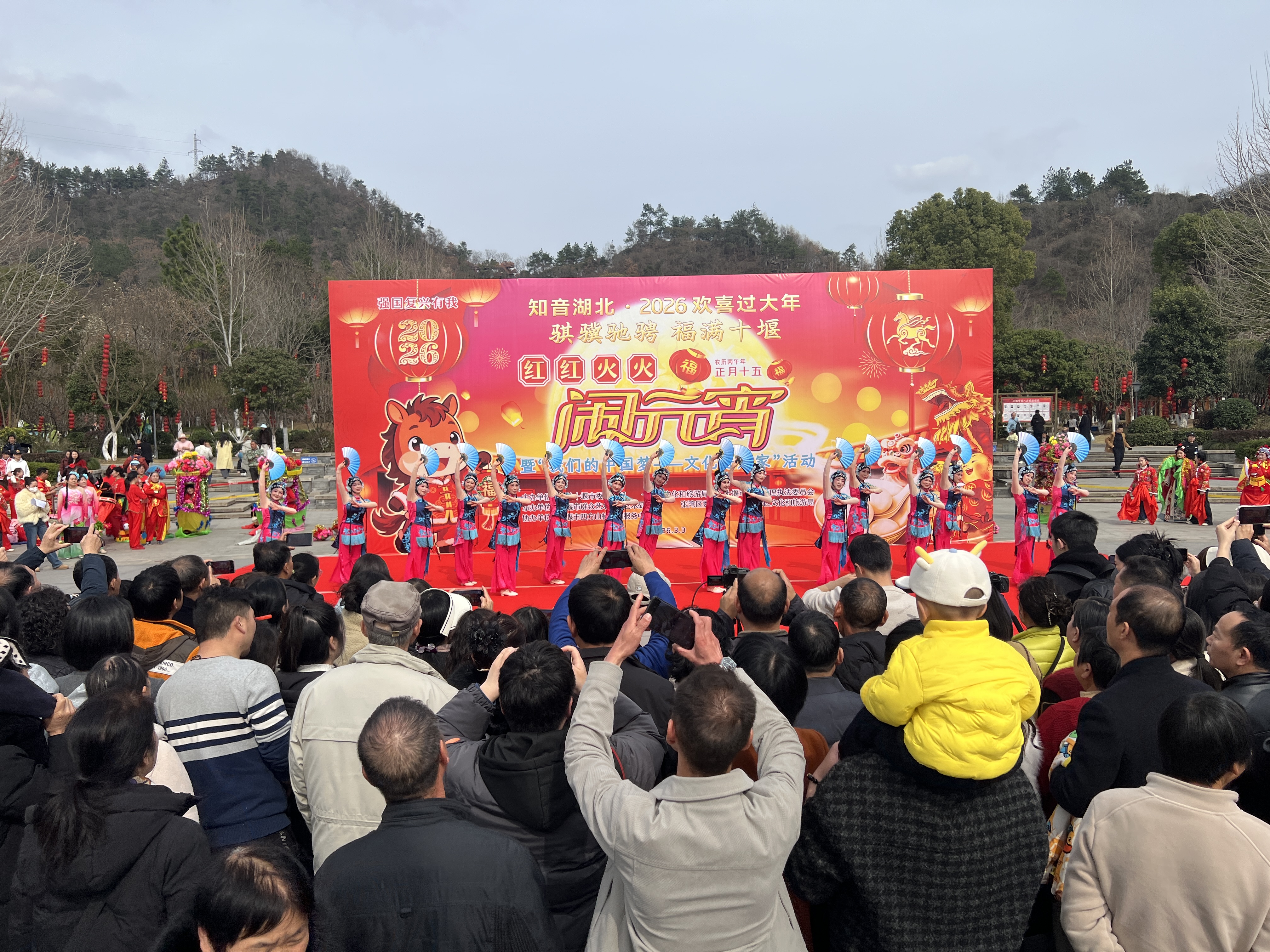 正月十五良宵至,红红火火闹元宵。为深入学习贯彻党的二十届四中全会精神,聚力服务支点建设,弘扬中华优秀传统文化,营造浓厚节日氛围,3月3日下午,由中共十堰市委宣传部、十堰市文化和旅游局、十堰市城市管理执法委员会主办,十堰市群众艺术馆(艺术研究院)、中共张湾区委宣传部、张湾区文化和旅游局承办,十堰市四方山植物园服务中心协办的“知音湖北·2026欢喜过大年”“红红火火闹元宵”暨“我们的中国梦——文化进万家”文化惠民活动在十堰市四方山植物园欢乐举行。