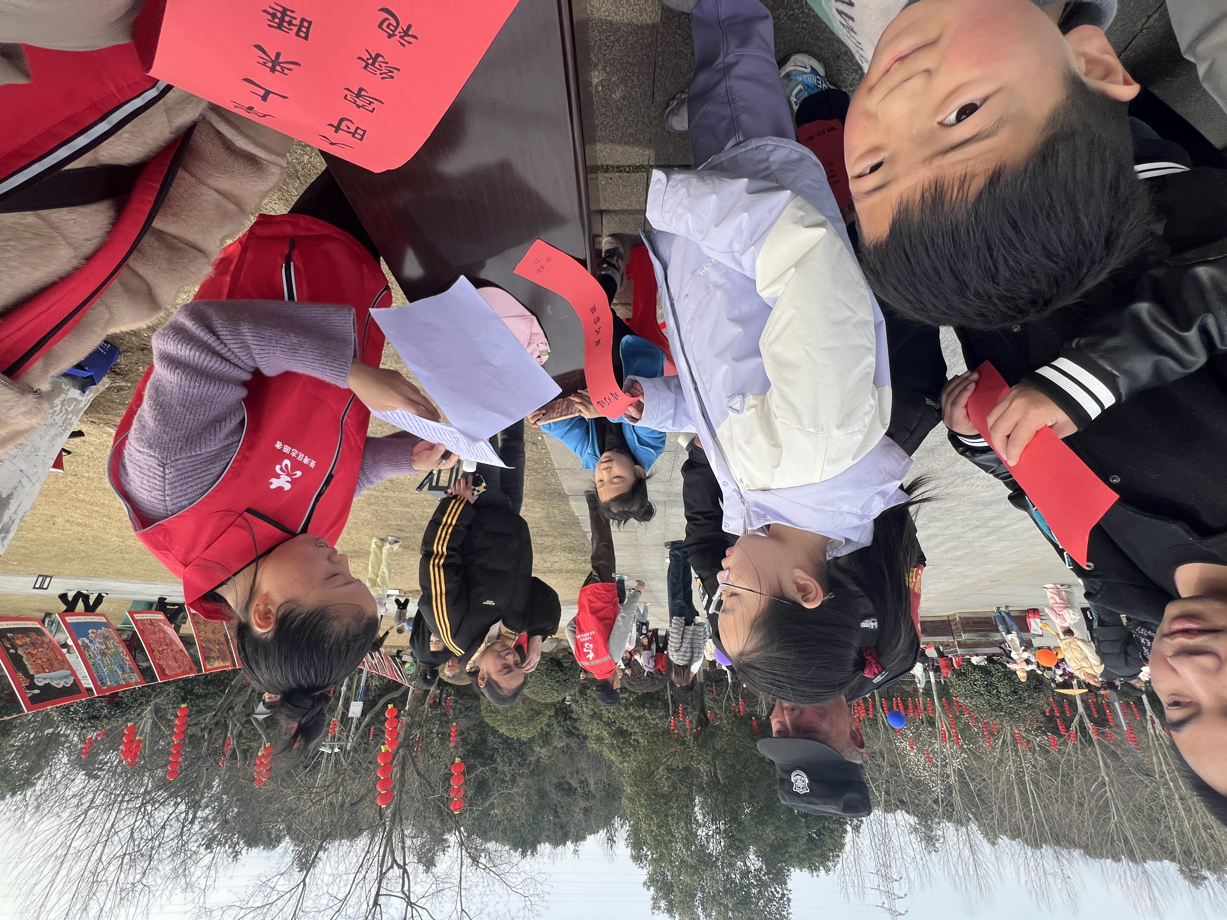 猜灯谜、赏花灯,是元宵节传承千年的文化传统。在演出舞台一侧还设置了猜灯谜和非遗年画展区,红灯笼下,一张张灯谜卡片和非遗年画随风轻摆,内容涵盖传统文化、生活常识、科普知识等多个领域,既有娱乐性,又具知识性。现场观众三五成群,或凝神思考,或热烈讨论,猜中谜底的观众朋友开心地领取周边景区门票奖励,活动现场欢声笑语不断。