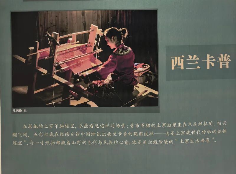 本次展览由百年民俗湖北记忆(恩施篇)展览策划团队,精心挑选40组100余幅民俗影像作品,内容涵盖土家族摆手舞、苗族银饰锻造、西兰卡普织锦等多项非物质文化遗产的传承场景,以及吊脚楼建筑群落、咂酒酿造技艺等具有地域特色的民俗事象。