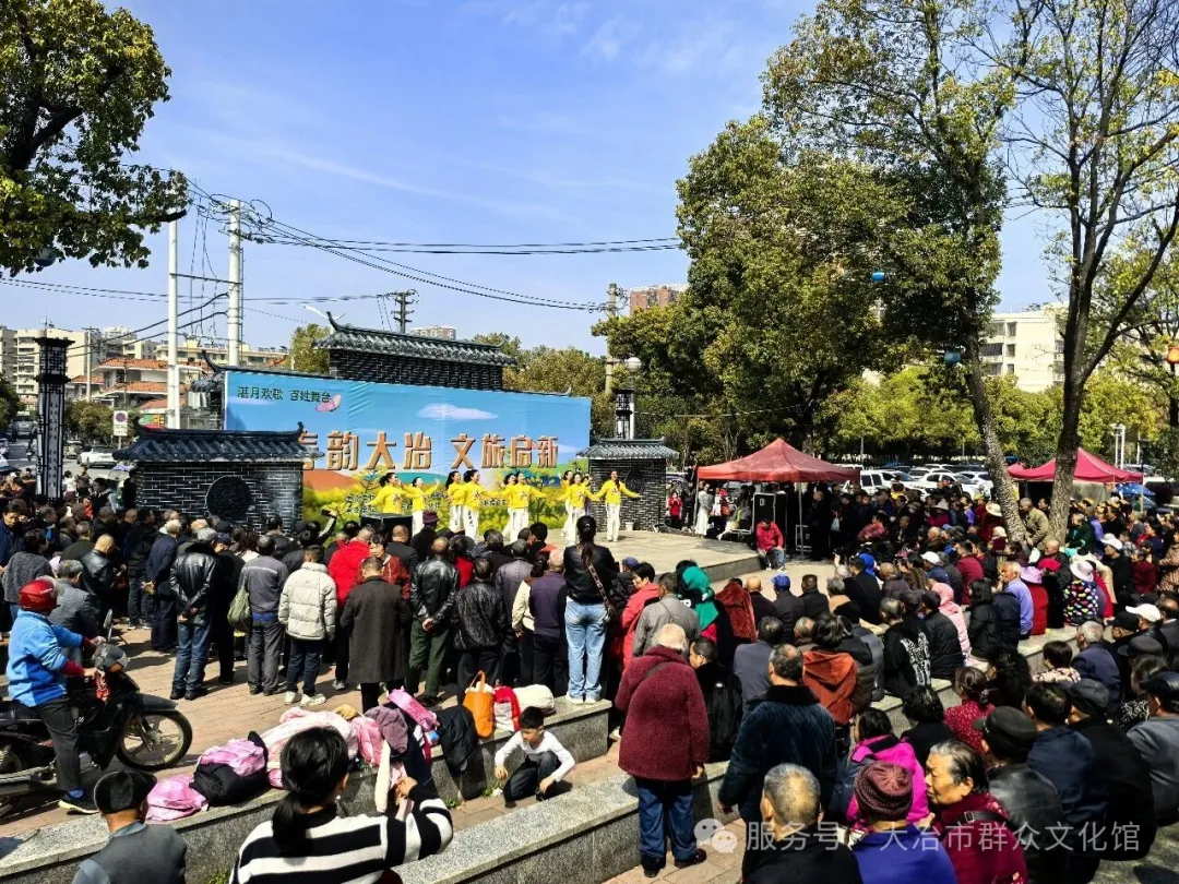 2026年3月21日,在大冶市夕阳红广场成功举办了“湛月欢歌 百姓舞台”文艺活动。本次活动以“春韵大冶 文旅启新”为主题,由市文旅局主办,市文化馆及东岳街道综合文化站承办,旨在通过群众性文艺演出丰富市民文化生活,以文明和谐、共建共享的理念推动地方文旅融合,展现春季的生机与活力。现场气氛热烈,吸引了众多市民驻足观赏,生动体现了社会主义核心价值观在基层的深厚共鸣。