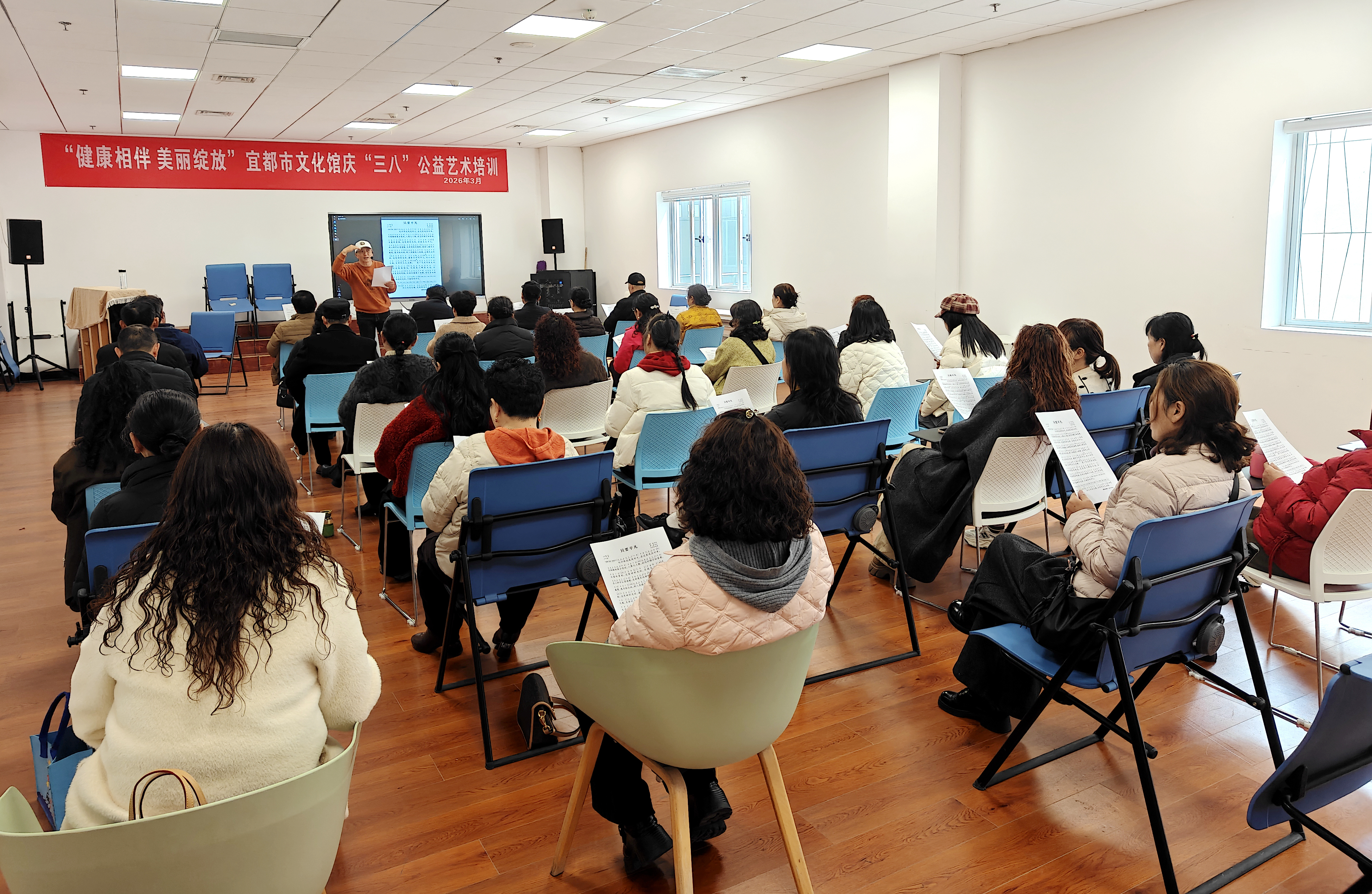 三月春风拂面,巾帼风采绽放。3月4日至6日,在第116个“三八”国际妇女节来临之际,宜都市文化馆以“健康相伴 美丽绽放”为主题,举办了为期三天的庆“三八”公益艺术培训。培训活动聚焦女性身心健康与精神文化需求,用艺术传递温暖,以文化滋养心灵,为百余名驻馆社团文艺爱好者送上一份特别的节日祝福。