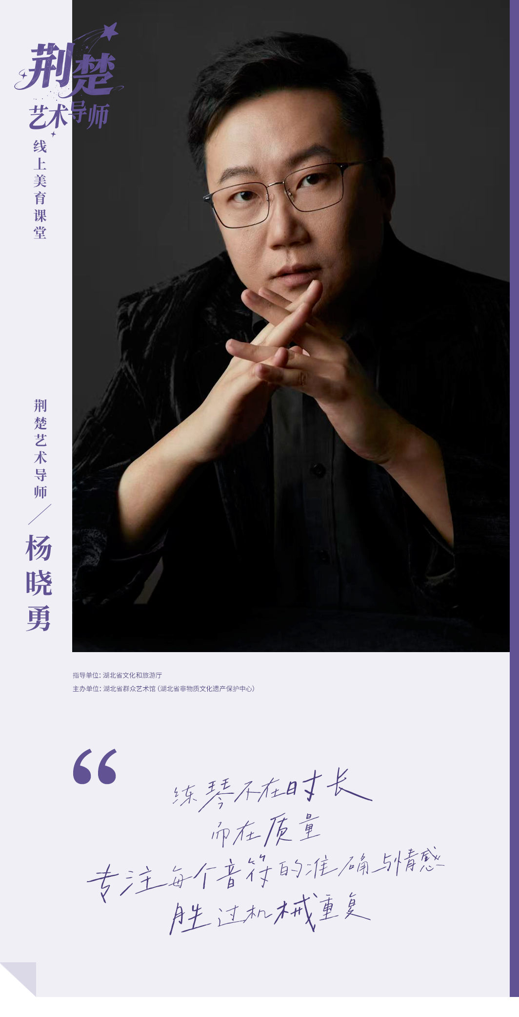 湖北省群众艺术馆“荆楚艺术导师”线上美育课堂重磅推出《布格缪勒钢琴作品的技巧与音乐之旅》课程,以布格缪勒12首经典作品为核心,用专业、易懂的讲解,带大家吃透技巧、读懂音乐,轻松走好钢琴进阶每一步。